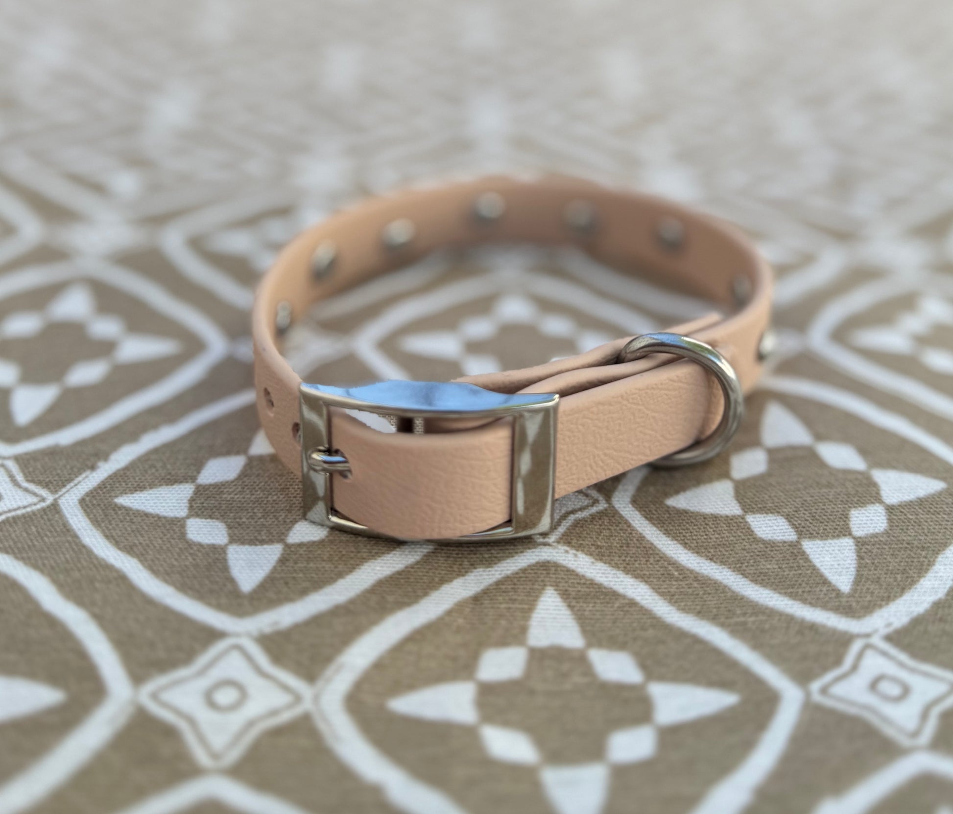 El collar de biothane combina resistencia, comodidad y estilo en un solo accesorio.