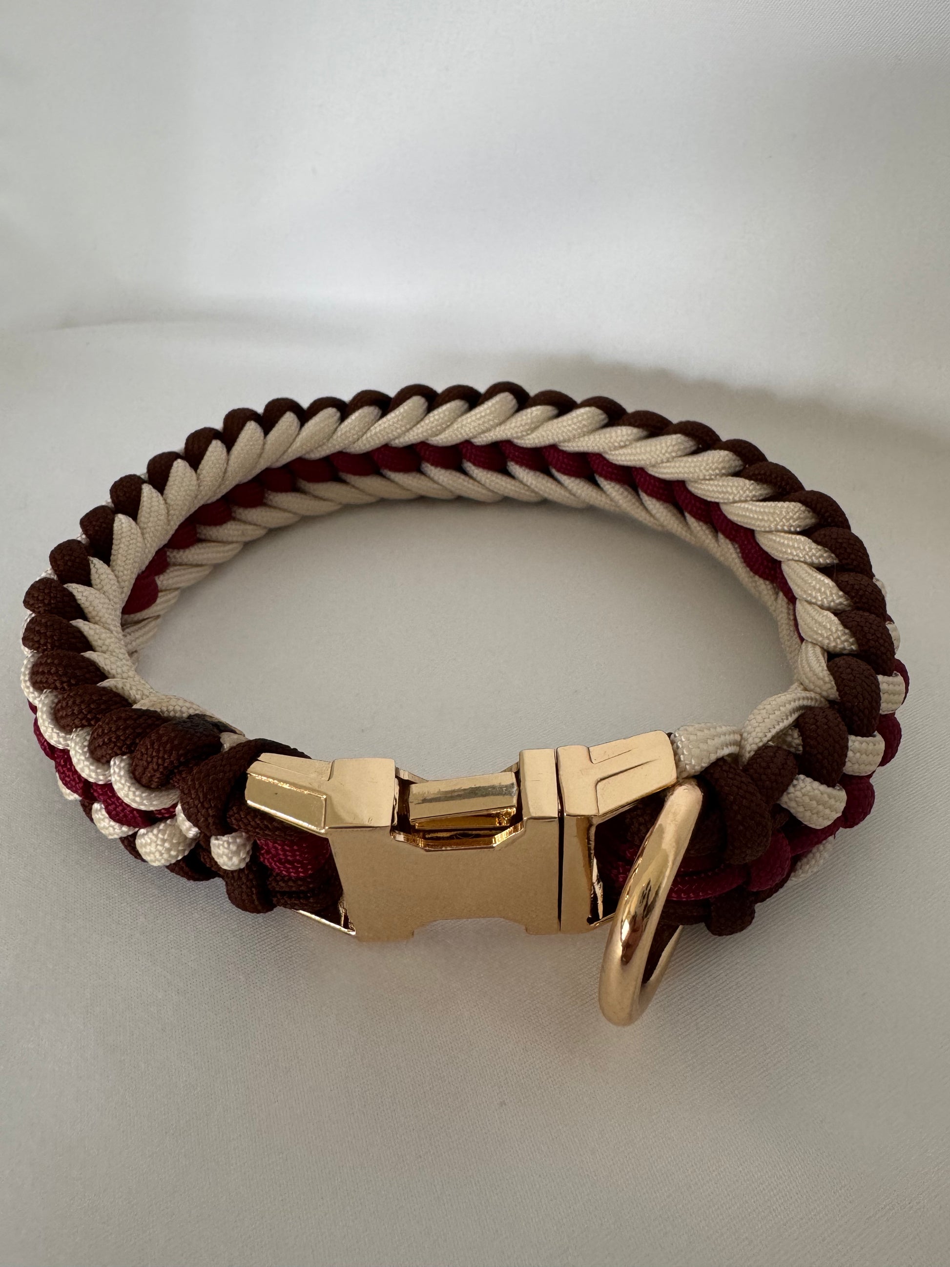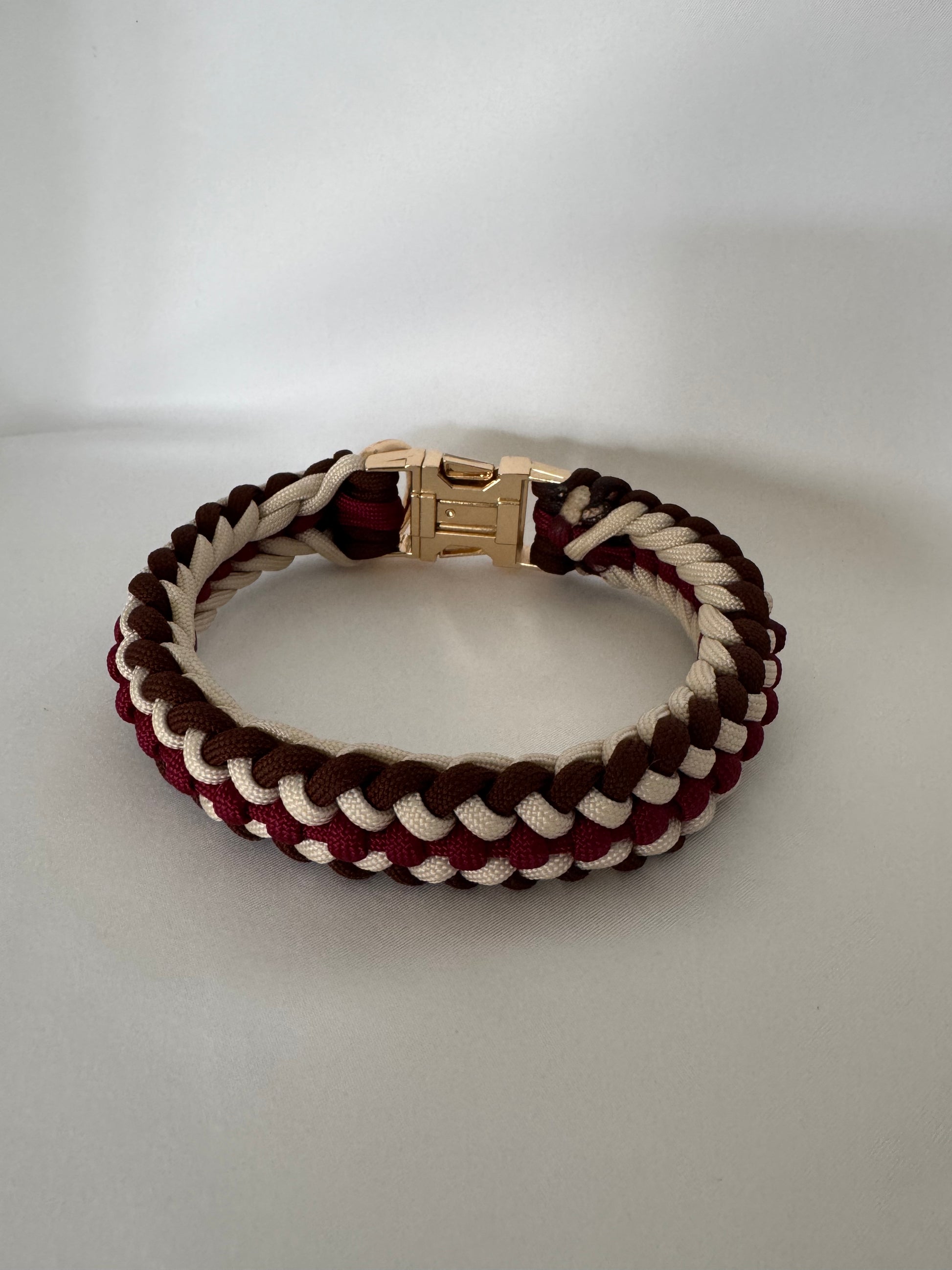 Este collar de Paracord es una pieza segura, cómoda y resistente, perfecta para aventureros y amantes del aire libre. Confeccionado con Paracord de alta calidad, te asegura una carga de rotura mínima de 250 kg por cada cuerda anudada.